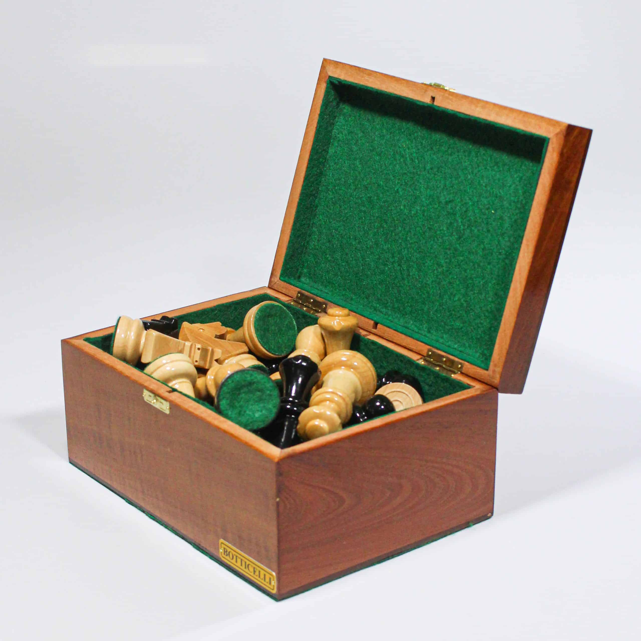Conjuntos de xadrez produzidos em madeira maciça e tabuleiro marchetado