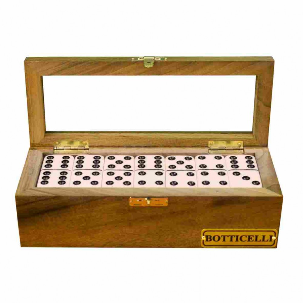 DOMINÓ EM POLIÉSTER COM ESTOJO TAMPA EM VIDRO