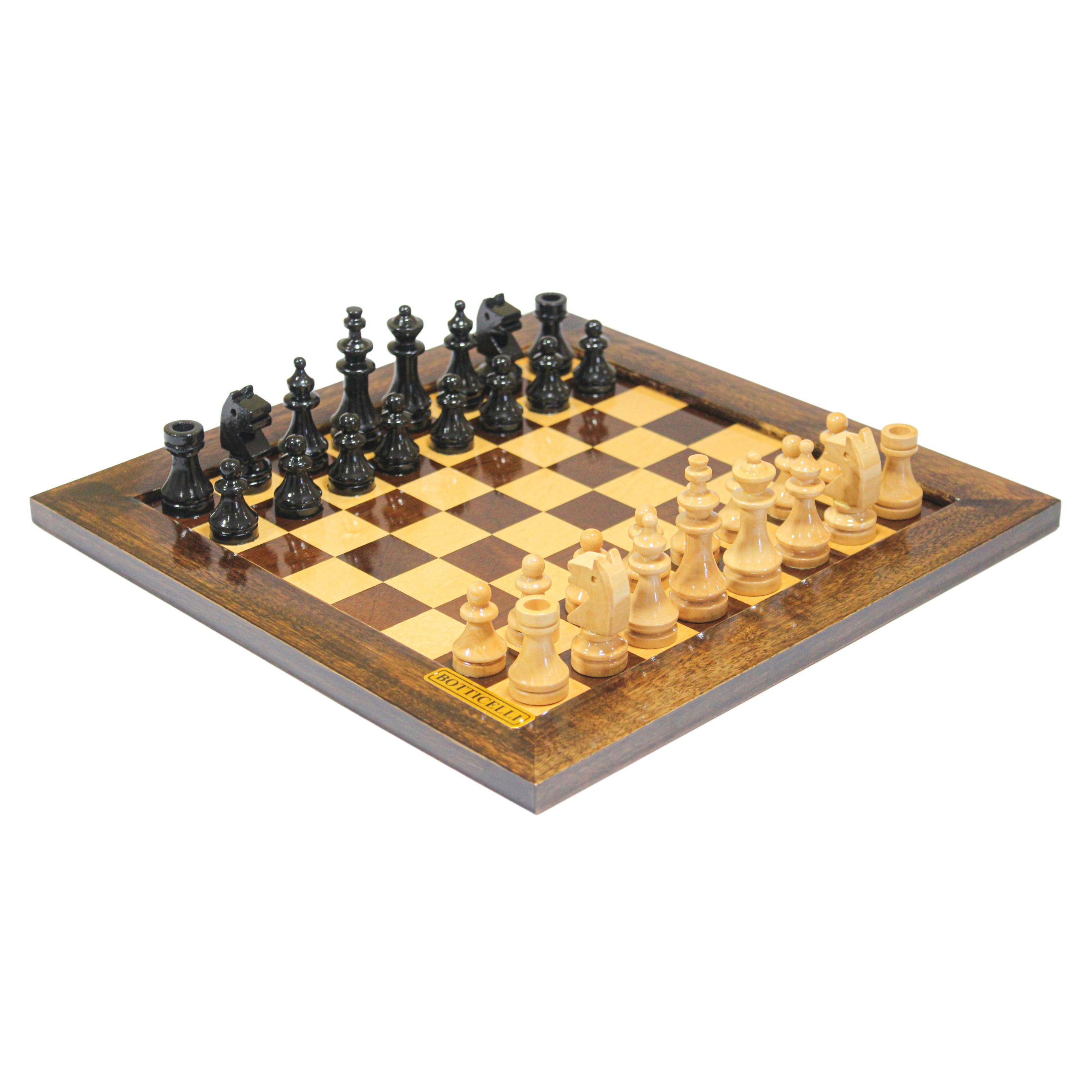 Conjuntos de xadrez produzidos em madeira maciça e tabuleiro marchetado